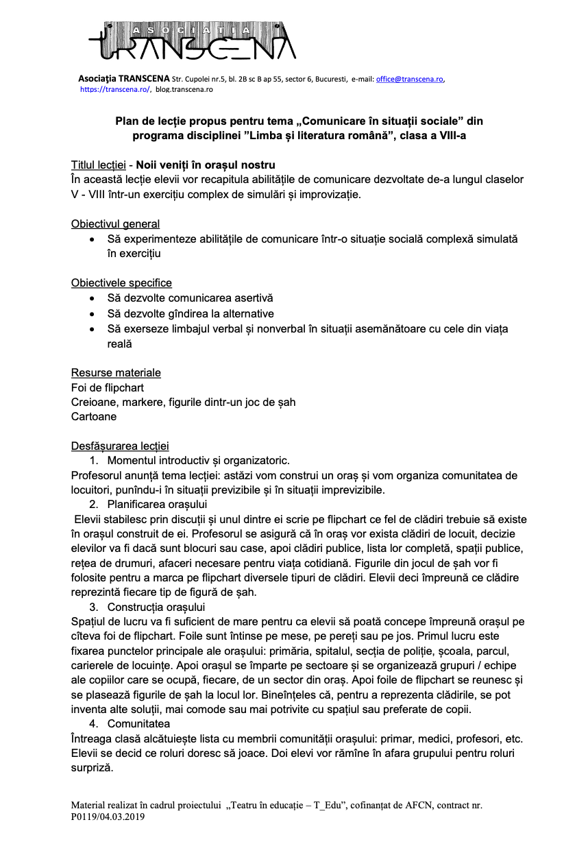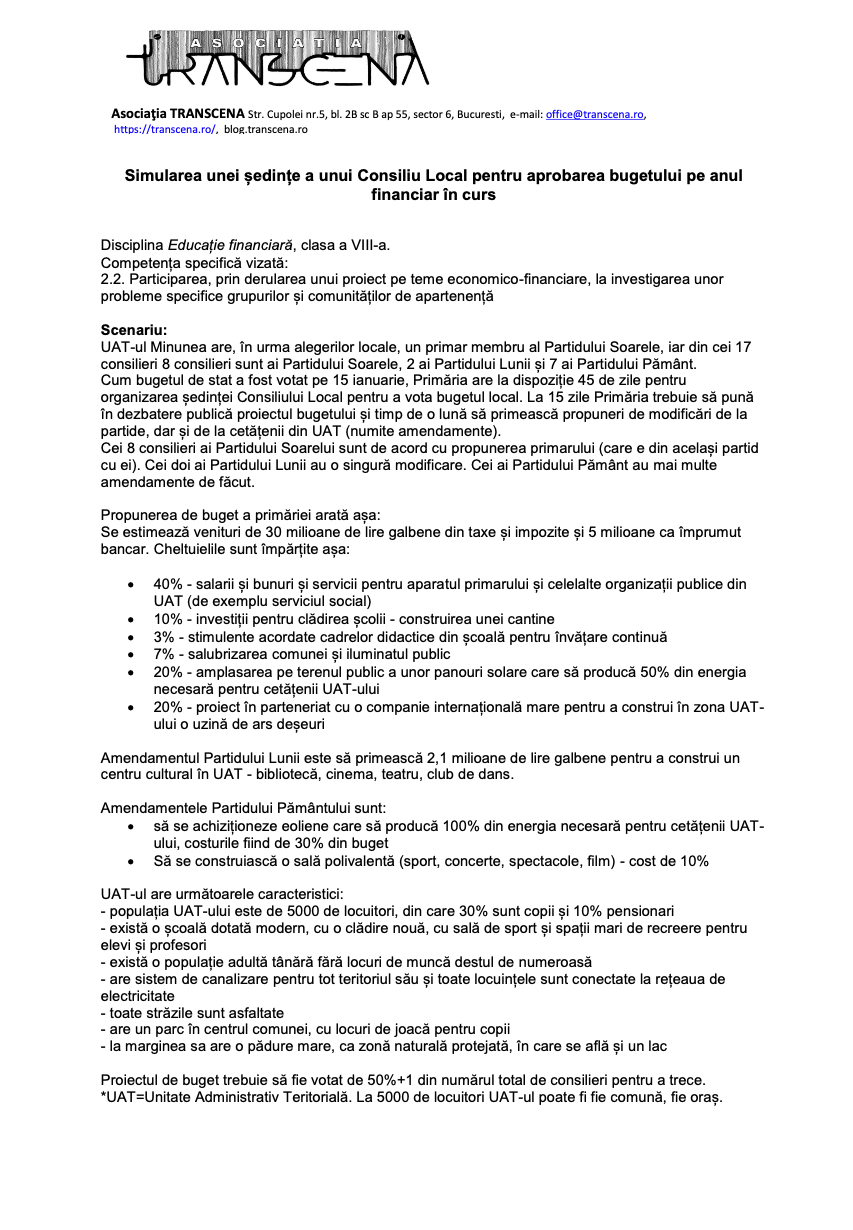 Pe această pagină vă prezentăm trei exemple de resurse educaționale ce au rezultat din proiecte derulate anterior de Asociația Transcena. Sperăm să vi se pară utile și, poate, să le experimentați în orele dumneavoastră. Dacă le aplicați vă rugăm să aveți amabilitatea să ne trimiteți câteva informații despre experiența din clasă: cum au reacționat copiii, ați reușit să parcurgeți tot materialul într-o oră, ce sugestii aveți sau dacă aveți întrebări. Pentru mesaje adresa este iulia.calin@transcena.ro