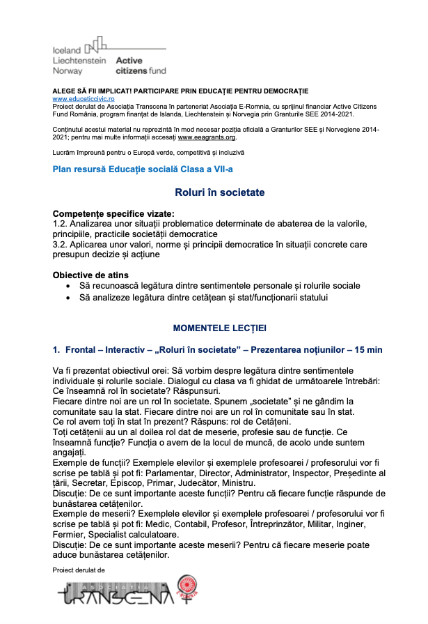 Obiectivele lecției sunt recunoașterea legăturii dintre sentimentele personale și rolurile sociale și analiza legăturii dintre cetățean și funcționarea statului.